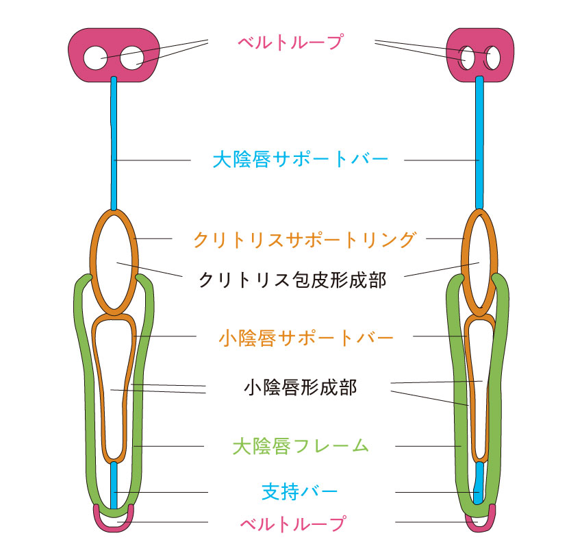 基本的にはテープ無しでの装着を想定していますが、小陰唇を形成する陰嚢が少ない場合補助的にテープが必要になる場合もあります。
