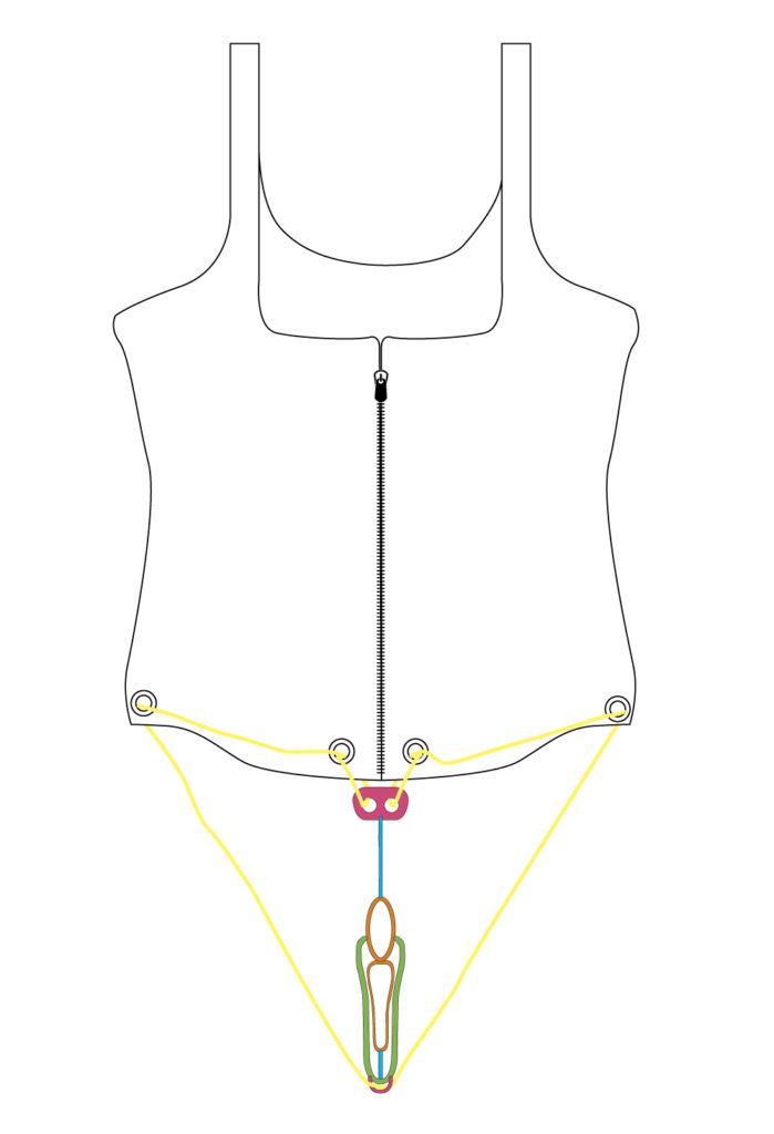 専用ウエストニッパーコルセットを着用してDuckTack Dタイプをゴム紐で装着します。