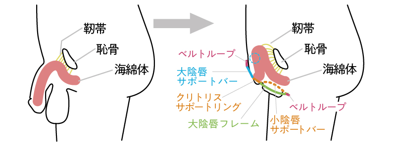 ・クリトリス・小陰唇の位置を本物の女性器の位置に補正可能です。