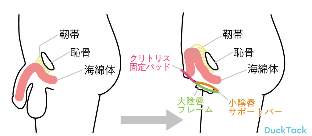 DackTackは性転換手術をすることなく女性器のようなリアルな外観に簡単補正可能です♡