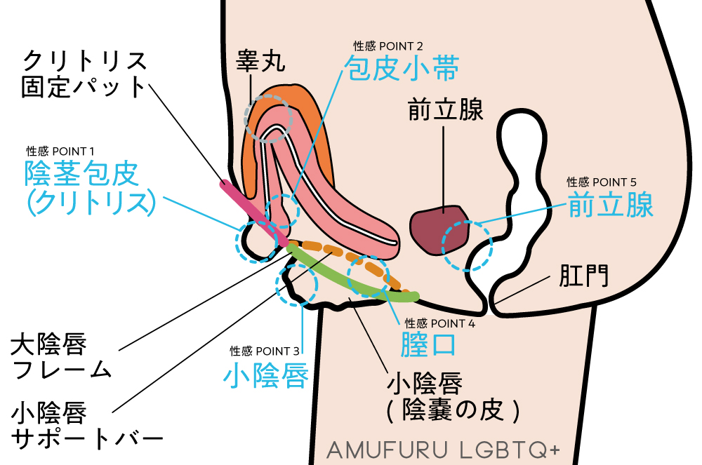 小陰唇をかき分け膣から指を入れてGスポットとして補正された包皮小帯を刺激可能です。